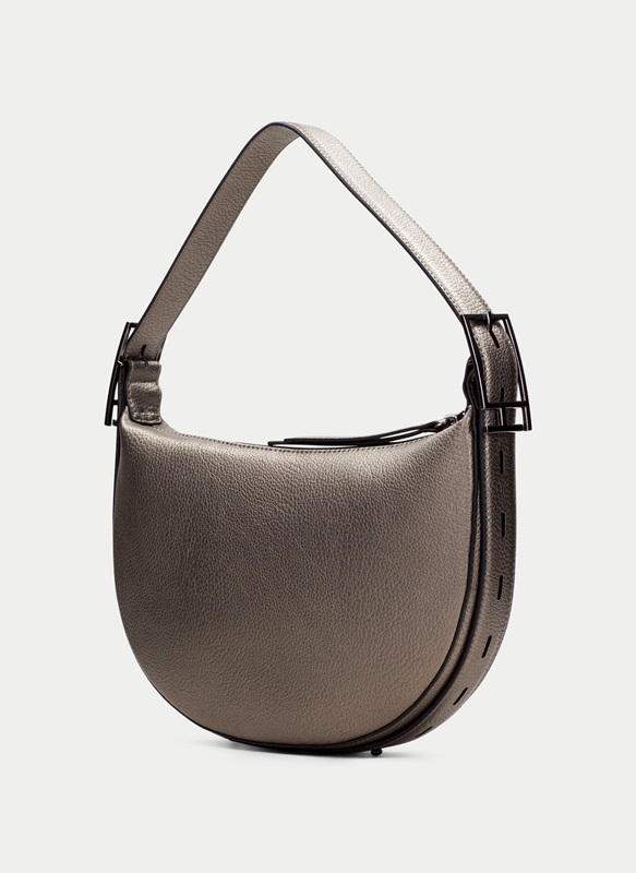 Bolso de hombro mediano estilo hobo. Su diseño contiene un bolsillo interior y cierre de cremallera que ayuda a brindar un espacio amplio y seguro para guardar tus pertenencias. Además, cuenta con el detalle de unas tiras ajustables y nombre de la marca en la parte frontal. Medidas: 26 x 17 cm x 7 cm