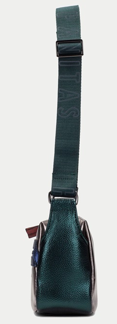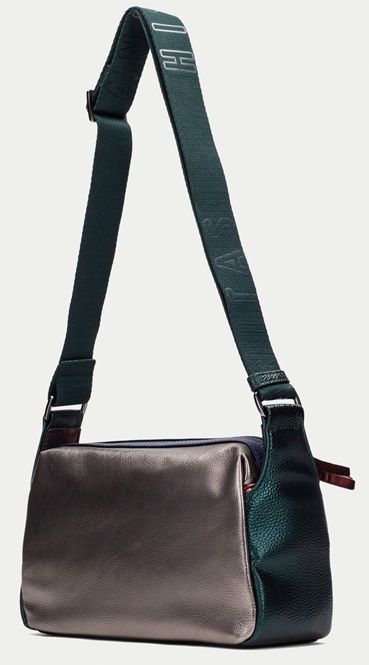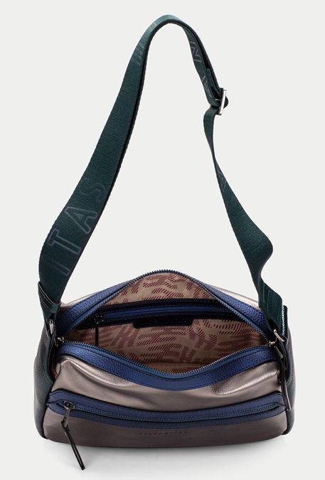 Bolso bandolera con asa ancha y detalle de bolsillo delantero con cremallera. Este modelo incorpora un asa larga modulable con altura máxima de 72 cm desde el hombro y detalle de logotipo en la misma. Es perfecto para el día a día gracias a su doble compartimento y su amplia capacidad. Medida: 27 cm 17 cm x 10 cm
