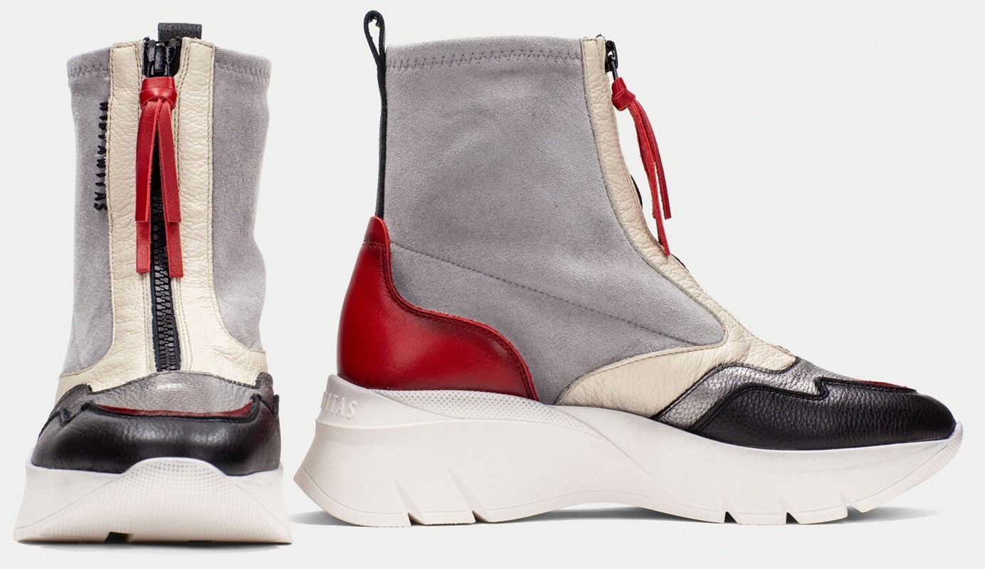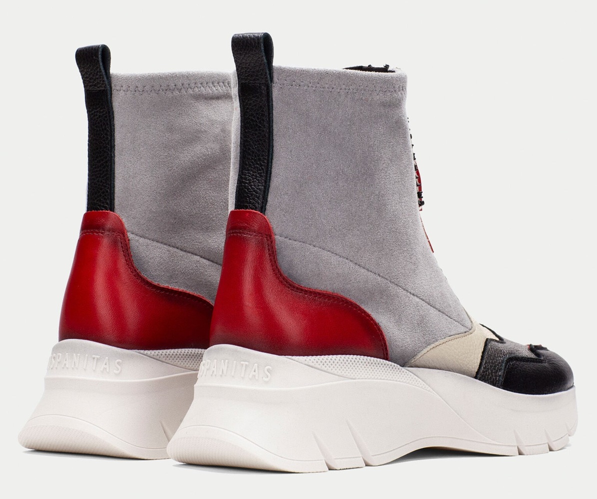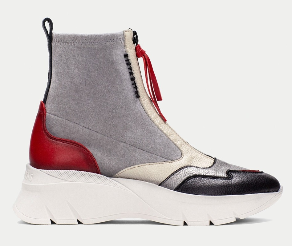 Botín sport con suela volumen de 5 cm y diseño de caña strech elaborado en combinación de materiales y cierre de cremallera en la parte frontal. Diseño estilo montaña y cierre de cremallera en el empeine con el nombre de la marca. Este zapato incorpora la tecnología TRIFLOW, y además cuenta con plantilla extraíble.