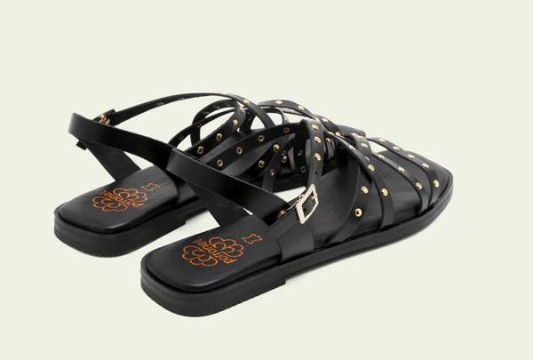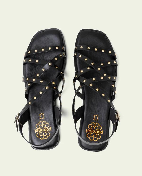 SANDALIA CON TACHAS PORRONET NEGRO