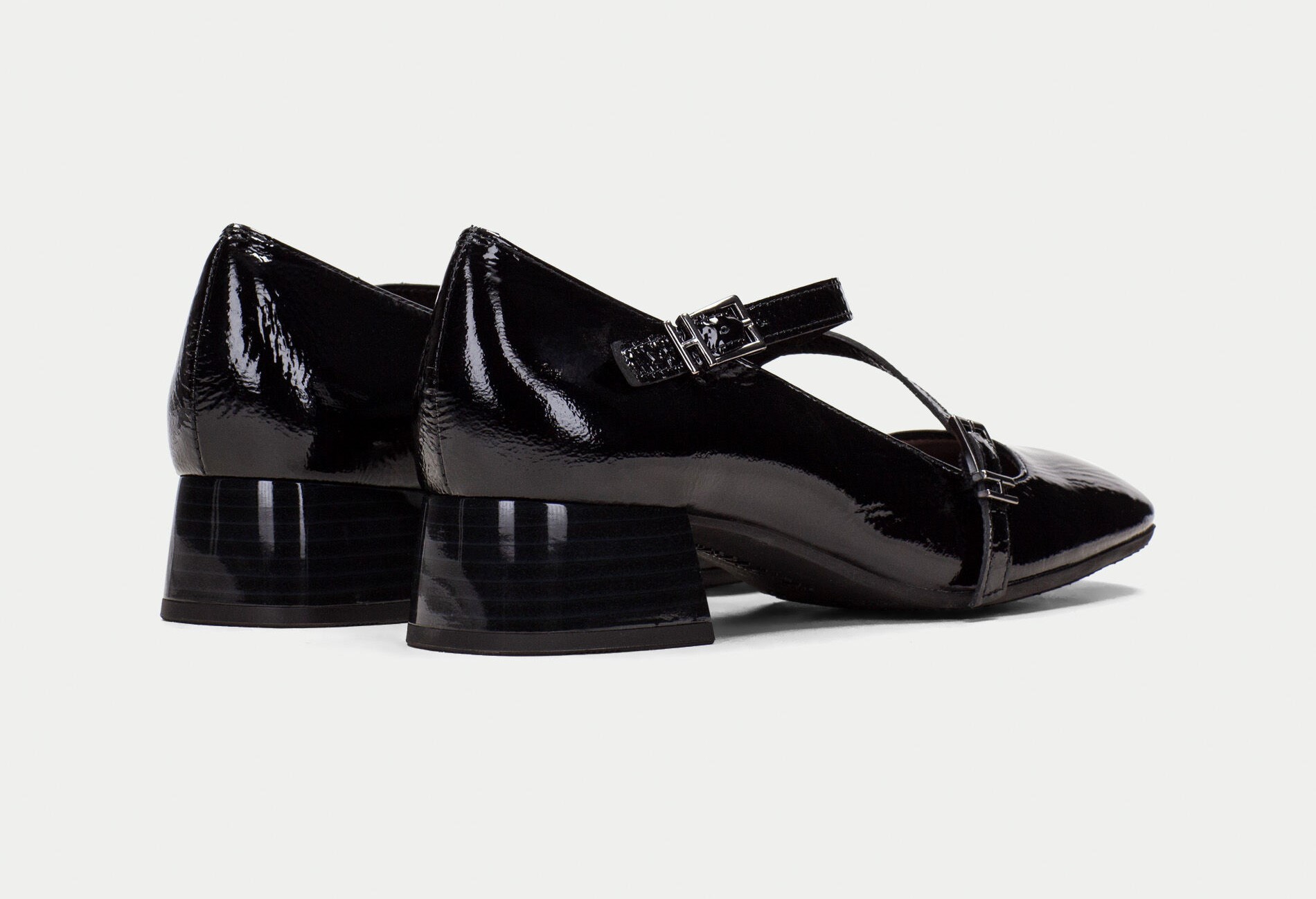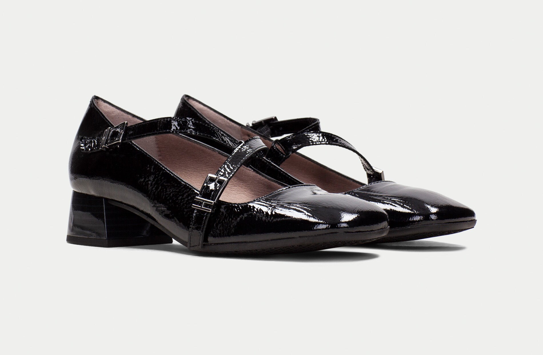 Bailarina de piel con punta ligeramente cuadrada y tacón bloque de 3,5 cm. Este modelo incorpora el detalle de tiras cruzadas en el empeine para una sujeción al pie perfecta. Además, cuenta con un triple almohadillado, llamado Triflow, que permite un efecto acolchado al caminar.