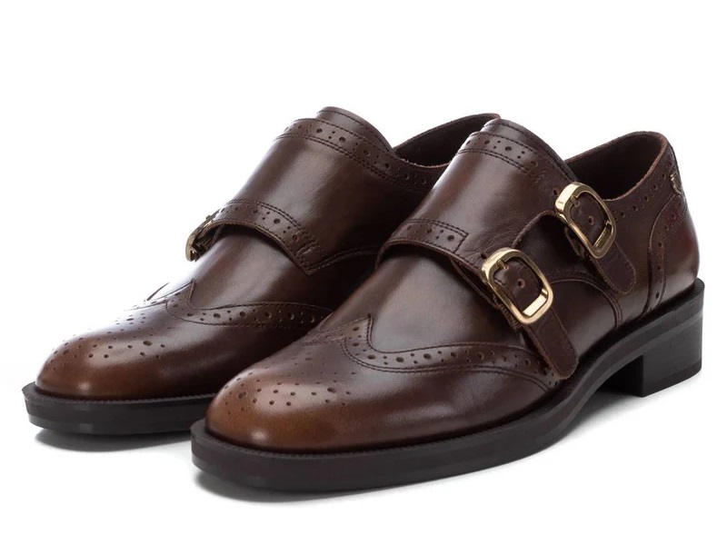 Mocasín de mujer, de la marca Carmela. Fabricado en piel de alta calidad. Cierre mediante hebillas. Calados decorativos. Suela gruesa y antideslizante y cómoda planta.